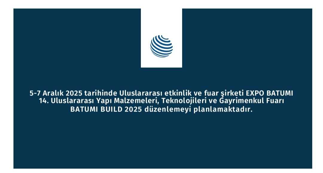 Uluslararası etkinlik ve fuar şirketi Expo Batumi tarafından 5-7 Aralık 2025 tarihlerinde, 14. Uluslararası Yapı Malzemeleri, Teknolojileri ve Gayrimenkul Fuarı Batumi Build 2025 düzenlemeyi planlamaktadır.
