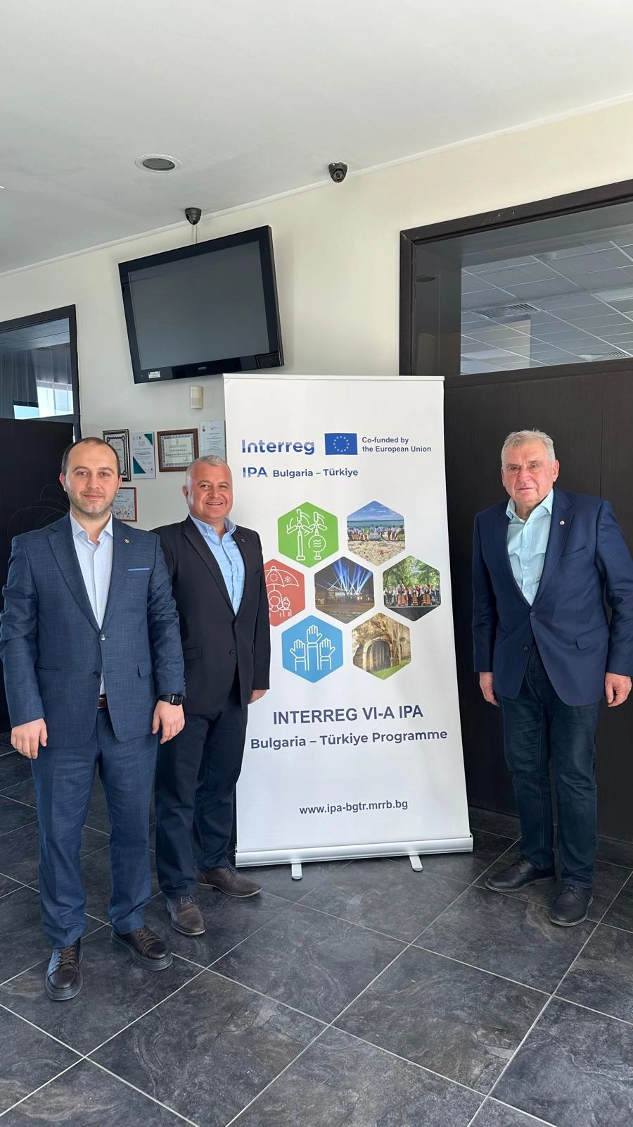 Borsamız Genel Sekreteri Emrah Çalışkan, Avrupa Bölgesi Sorumlusu Serhad Güney kardeş oda Bulgaristan Burgas Ticaret ve Sanayi Odası Yönetim Kurulu Başkanı Todor Demirkov ve Genel Sekreter Boryana Zheleva ile birlikte Bulgaristan’ın Burgaz şehrinde düzenlenen “2028-2034 Interreg Bulgaristan-Türkiye Programı Ortak İstişare Toplantısı”na katıldı.
