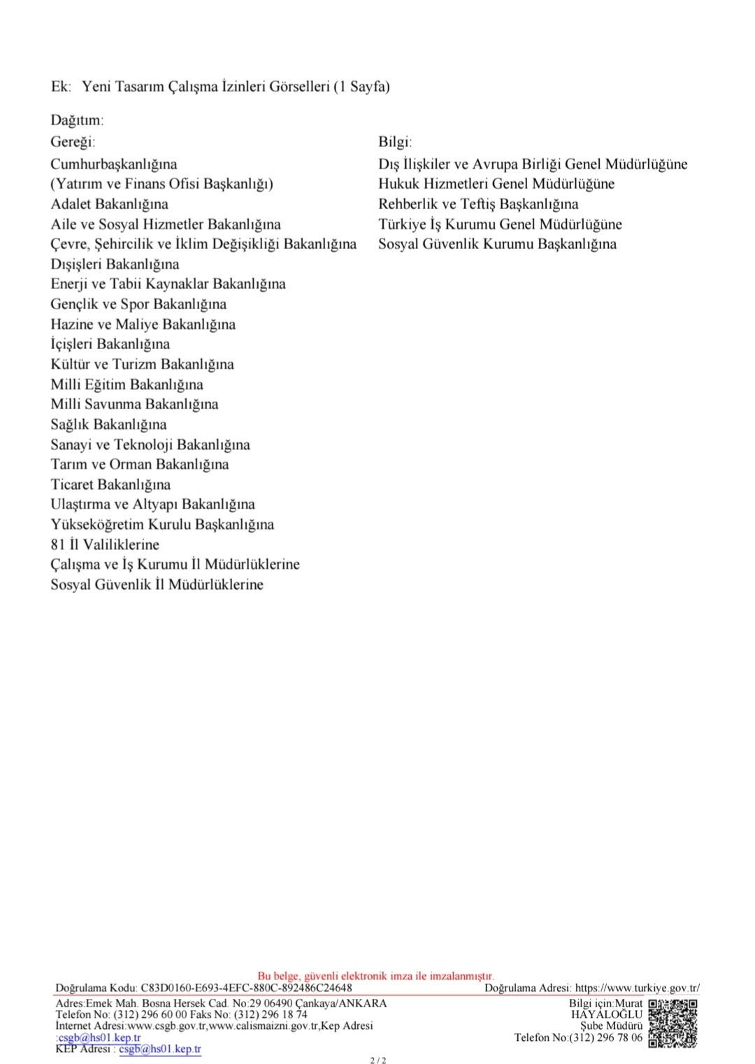 Bu çerçevede, tasarlanan izin belgelerinin basım, kişiselleştirme ve dağıtım işlemlerinin Mart 2026 itibarıyla başladığı, mevcut uygulamada da olduğu gibi çalışma izin kartlarının doğrulama işlemlerinin kart üzerinde yer alan karekod aracılığıyla veya https://izinsorgula.csgb.gov.tr internet adresinde bulunan "Yabancıların Çalışma İzni, Çalışma İzni Muafiyeti ve Turkuaz Kart Bilgisi Sorgulama Sistemi" üzerinden yapılabileceği belirtilmektedir.