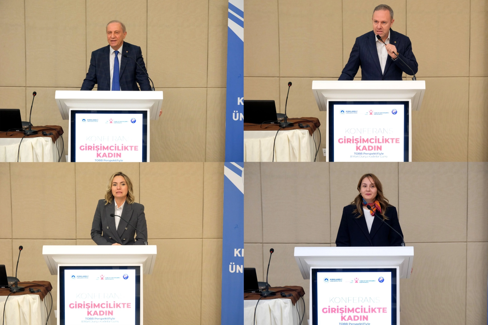 8 Mart Dünya Kadınlar Günü kapsamında kadın girişimciliğini ve liderliği TOBB vizyonuyla ele almak amacıyla düzenlenen “Girişimcilikte Kadın: TOBB Perspektifiyle 8 Mart Dünya Kadınlar Günü Konferansı” na Kırklareli Üniversitesi Rektörü Prof. Dr. Rengin Ak, Kırklareli Ticaret Borsası Yönetim Kurulu Başkanı Turhan Altıntel, TOBB Kırklareli Kadın Girişimciler Kurulu Başkanı Ruhan Uzunlar Altıntel, kurul üyeleri, Kırklareli Ticaret ve Sanayi Odası Yönetim Kurulu Başkanı Soner Ilık, Meclis Başkanı İsmail Hakkı Özsan, TOBB Kırklareli Kadın Girişimciler Kulübü Başkanı Aleyna Karakurt, akademik personel ve öğrenciler katılım sağladı.