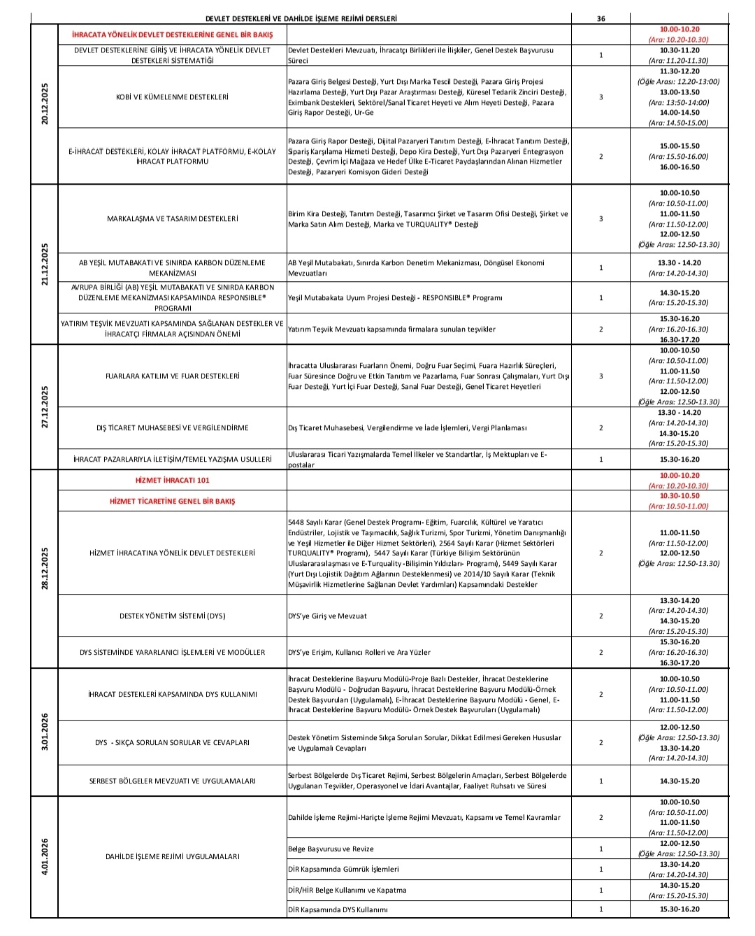 Ekte duyuru görseli ve akışı sunulan söz konusu eğitim programına katılmak isteyen ilgililerin başvurularının, https://ihracatakademisi.org.tr adresi üzerinden alınmaya başlandığı ifade edilmektedir.
