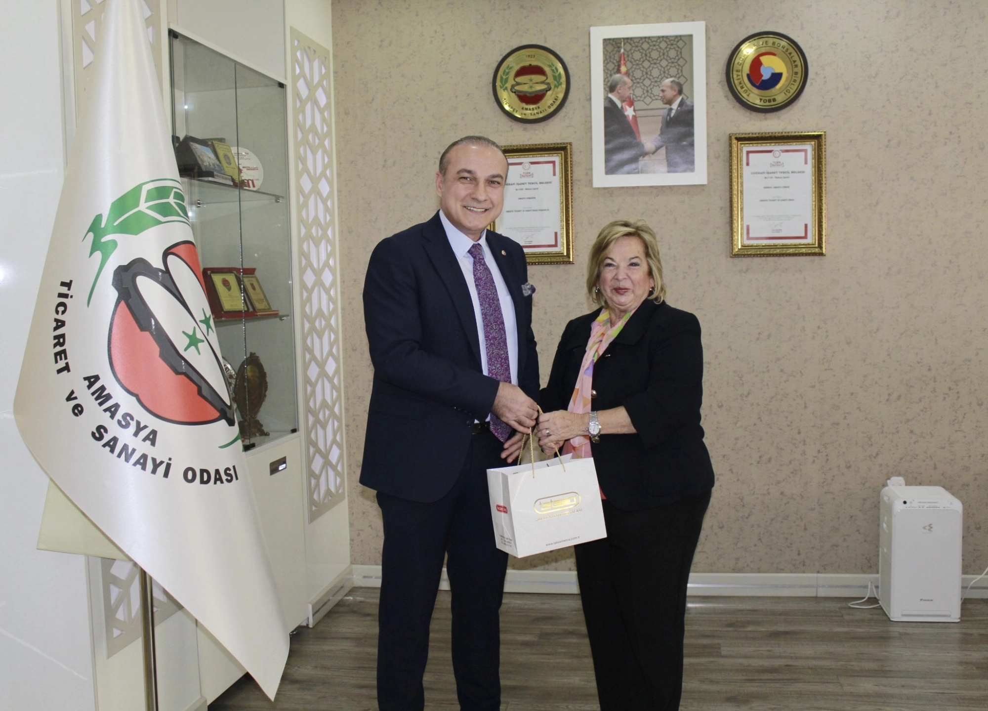 Kırklareli Ticaret Borsası Yönetim Kurulu Başkanımız Turhan Altıntel ile TOBB Kırklareli Kadın Girişimcilet Kurulu Başkanı ve TOBB Kadın Girişimciler Kurulu Trakya Bölge Başkanı Ruhan Uzunlar Altıntel, bölgesel iş birliği ve istişarelerde bulunmak üzere Amasya Ticaret ve Sanayi Odası Yönetim Kurulu Başkanı Murat Kırlangıç' ı ziyaret ettiler.