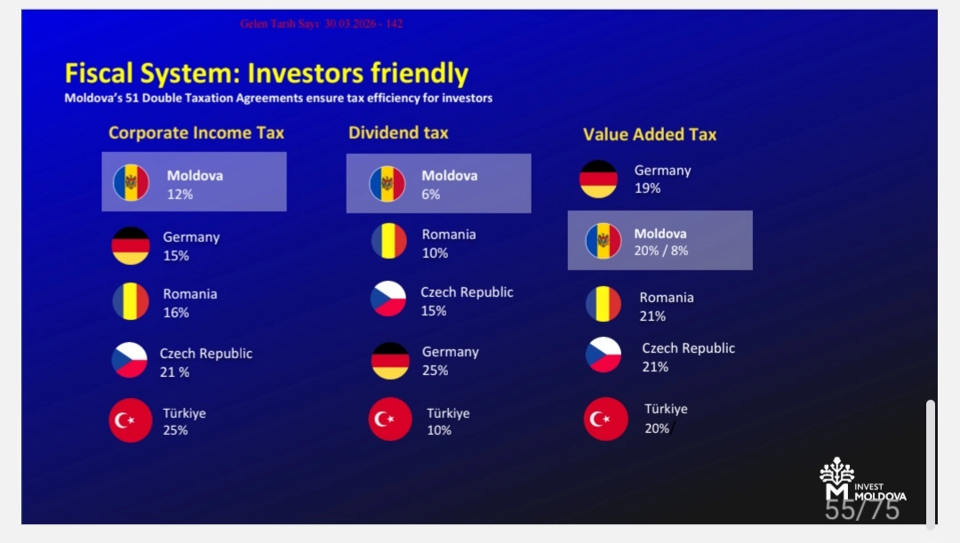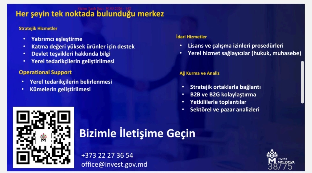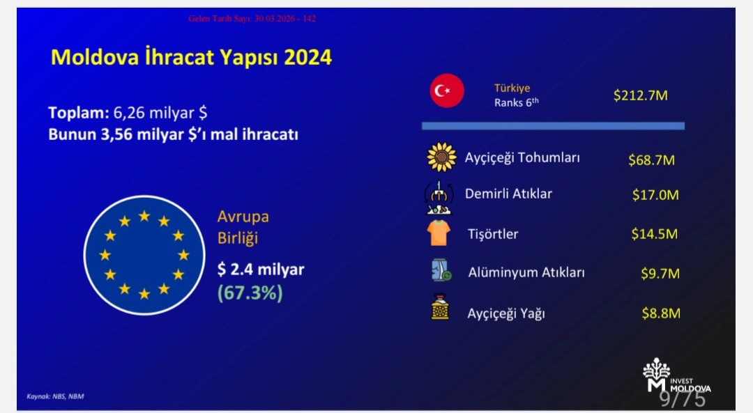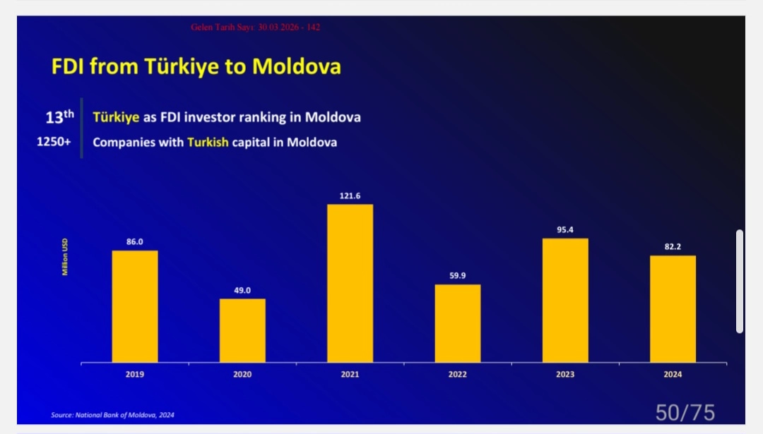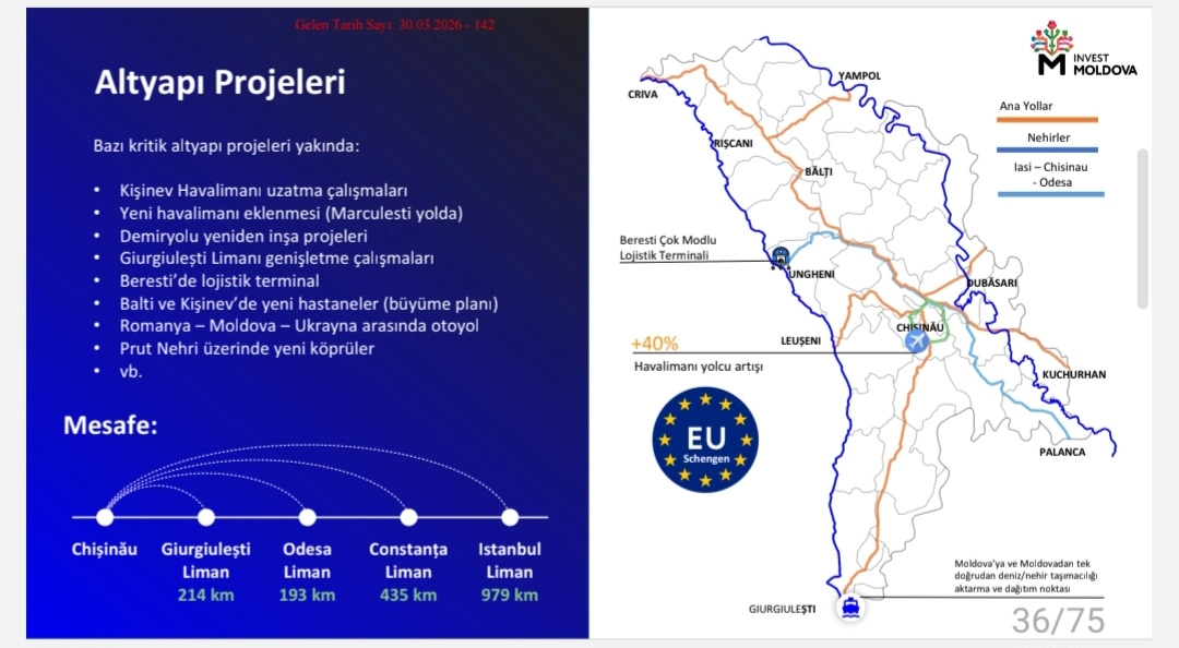 Türkiye Odalar ve Borsalar Birliği’nce tarafımıza iletilen yazıda, Moldova Cumhuriyeti Ankara Büyükelçiliği’nin ilgili yazısına atfen, Moldova Cumhuriyeti'nin demografi, ekonomi, yönetişim ve temel göstergelerine ilişkin Türkçe ve İngilizce sunumlar paylaşılmaktadır.