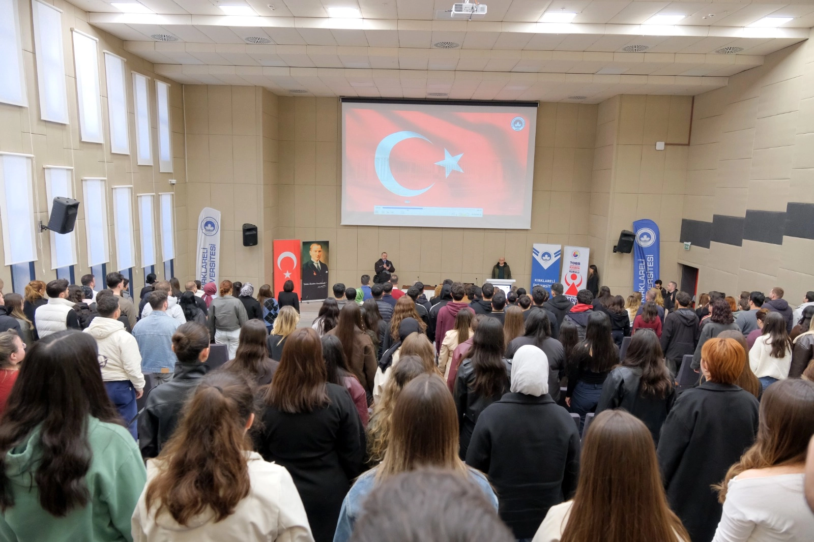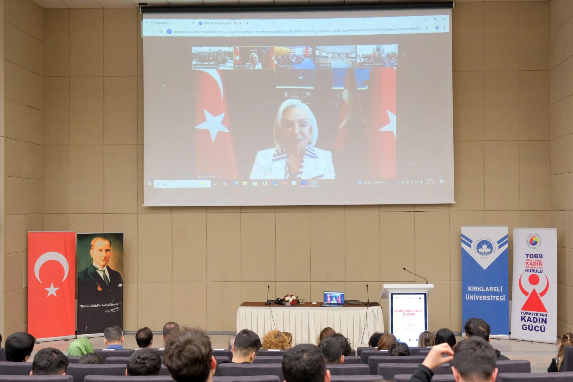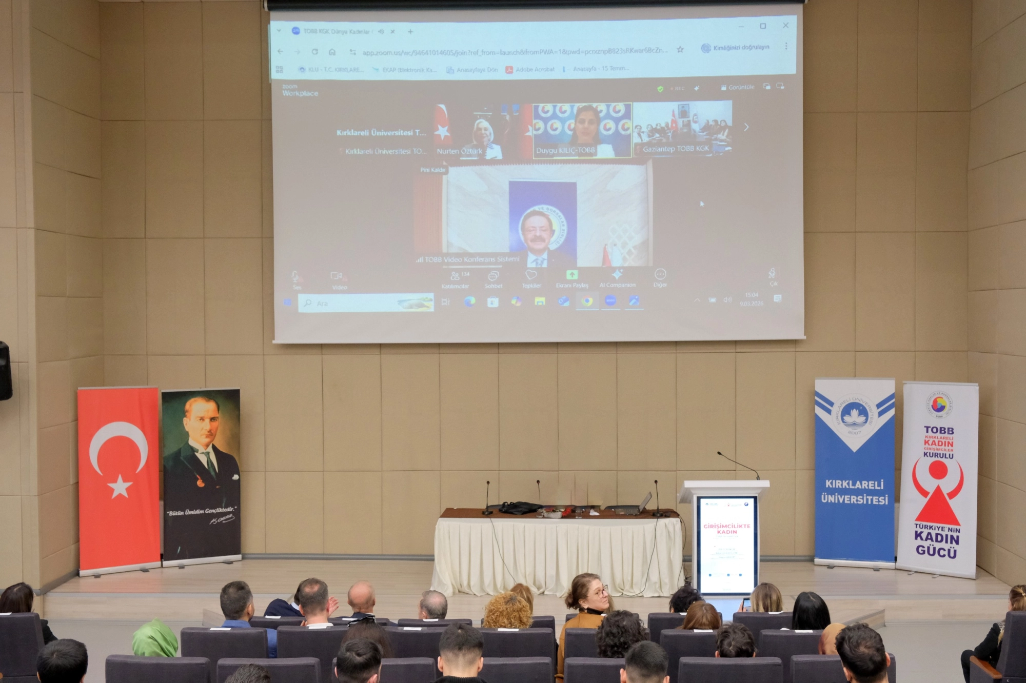 8 Mart Dünya Kadınlar Günü kapsamında kadın girişimciliğini ve liderliği TOBB vizyonuyla ele almak amacıyla düzenlenen “Girişimcilikte Kadın: TOBB Perspektifiyle 8 Mart Dünya Kadınlar Günü Konferansı” na Kırklareli Üniversitesi Rektörü Prof. Dr. Rengin Ak, Kırklareli Ticaret Borsası Yönetim Kurulu Başkanı Turhan Altıntel, TOBB Kırklareli Kadın Girişimciler Kurulu Başkanı Ruhan Uzunlar Altıntel, kurul üyeleri, Kırklareli Ticaret ve Sanayi Odası Yönetim Kurulu Başkanı Soner Ilık, Meclis Başkanı İsmail Hakkı Özsan, TOBB Kırklareli Kadın Girişimciler Kulübü Başkanı Aleyna Karakurt, akademik personel ve öğrenciler katılım sağladı.
