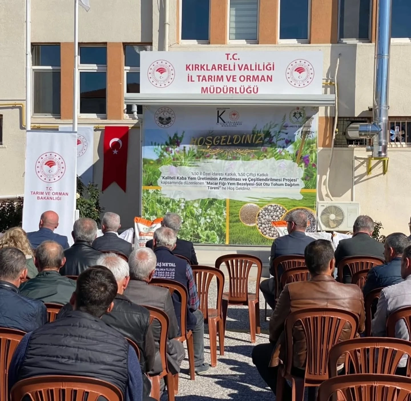 Kırklareli İl Tarım ve Orman Müdürlüğünde düzenlenen Kırklareli il Özel İdaresi destekli "Kaliteli Kaba Yem Üretiminin Artirilması ve Çeşitlendirilmesi Projesi" kapsamında düzenlenen Macar Fiği - Yem Bezelyesi - Süt Otu Tohum Dağıtım Törenine Meclis Üyemiz Hikmet Yıldırım katıldılar.