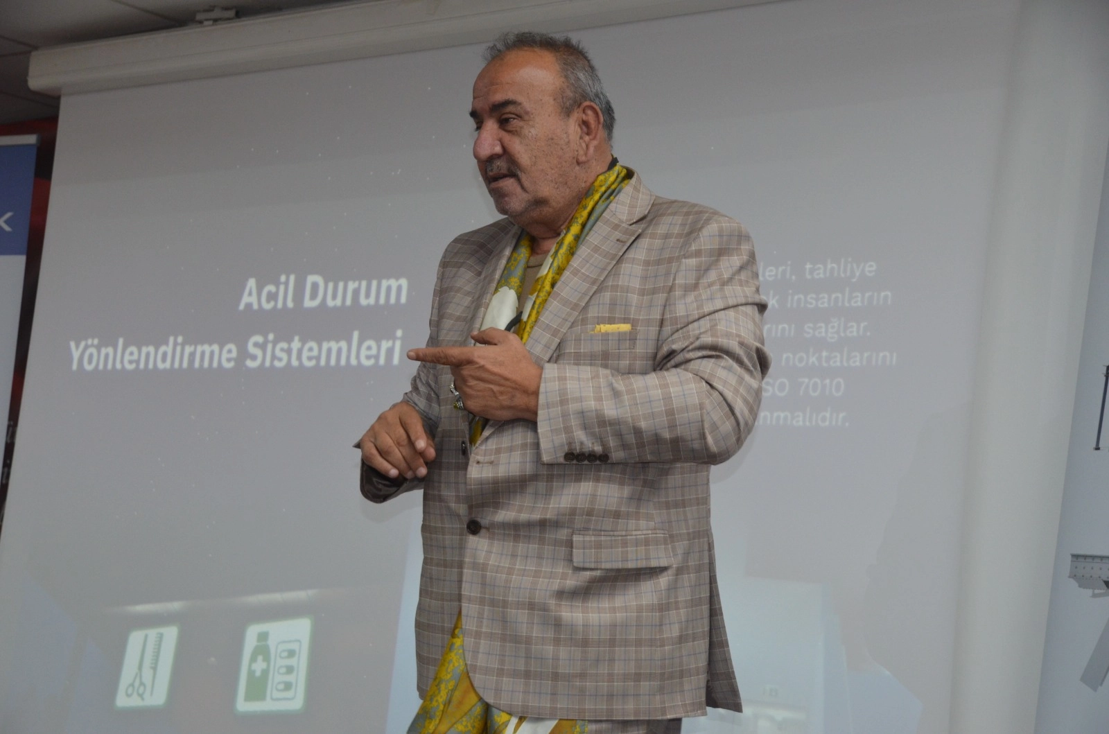 Ardından Emekli Sivil Sivil Savunma Müdürü ve Yangın Bilirkişisi Dr. Yalçın Karagözler tarafından kapsamlı bir sunum gerçekleştirildi. Türkiye’den ve dünyadan örneklerle yangın güvenliği konusunu ele alan Karagözler, temel yangın eğitimlerinin önemine dikkat çekerek, toplumsal farkındalığın artırılmasının gerekliliğini vurguladı.