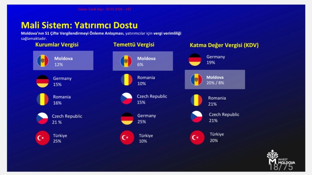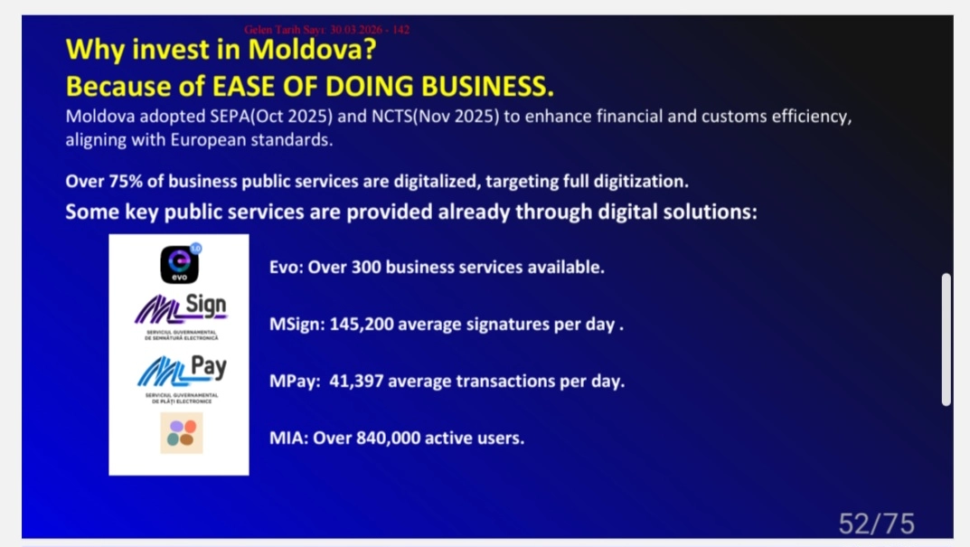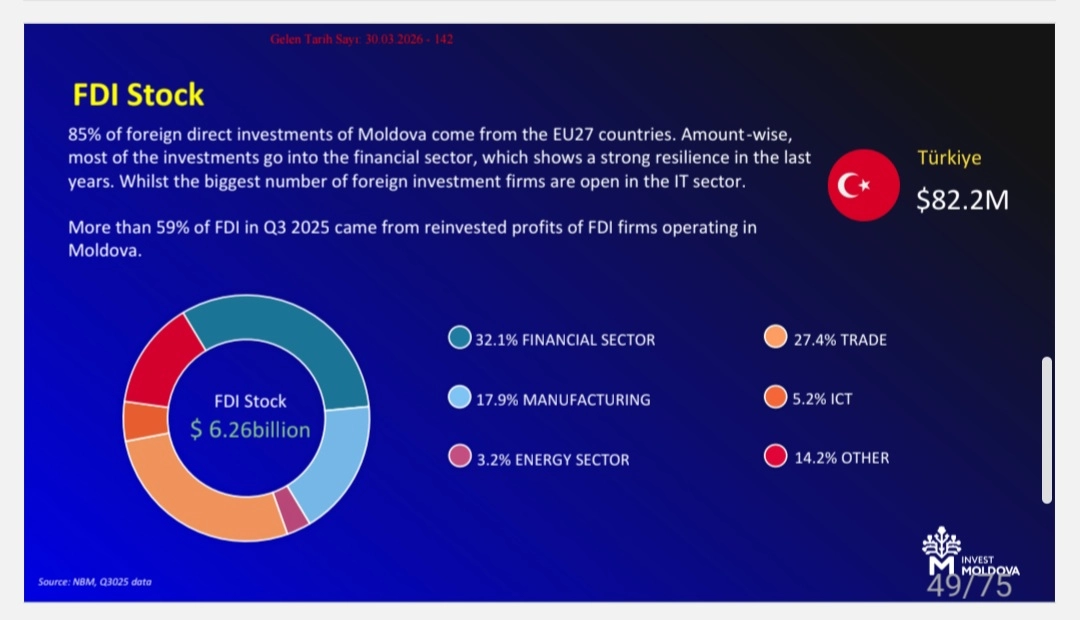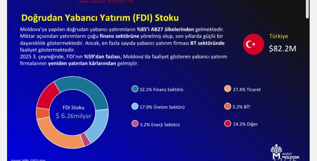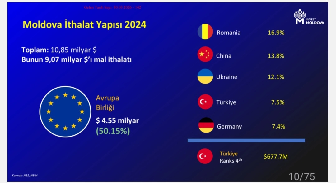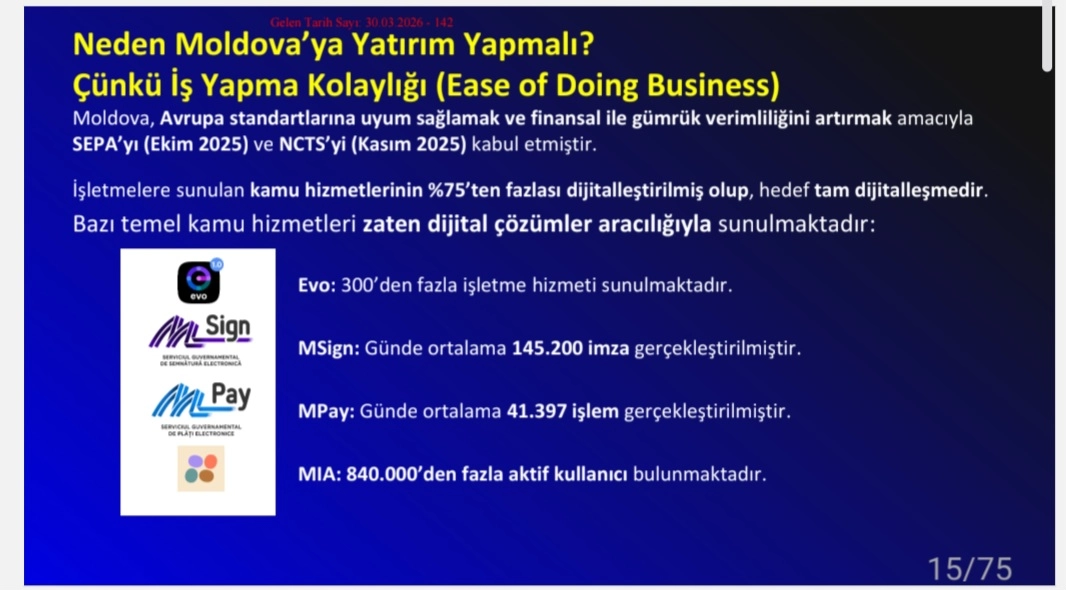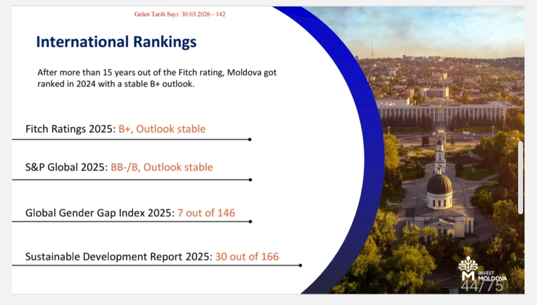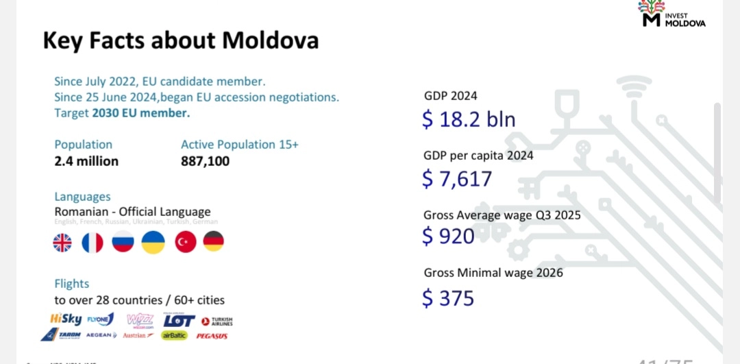Türkiye Odalar ve Borsalar Birliği’nce tarafımıza iletilen yazıda, Moldova Cumhuriyeti Ankara Büyükelçiliği’nin ilgili yazısına atfen, Moldova Cumhuriyeti'nin demografi, ekonomi, yönetişim ve temel göstergelerine ilişkin Türkçe ve İngilizce sunumlar paylaşılmaktadır.