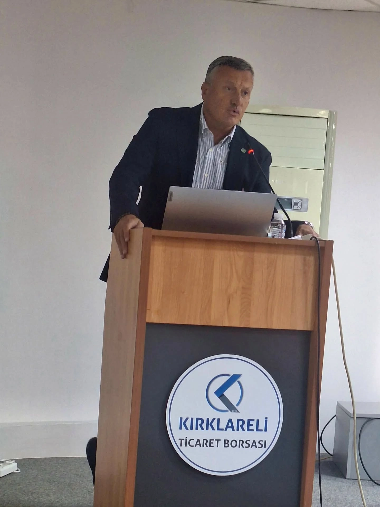 Toplantıya Borsamız adına Kırklareli Ticaret Borsası Meclis Üyemiz Hikmet Yıldırım katılım sağladı. Hikmet Yıldırım toplantının açılış konuşmasında tarımda enerji verimliliğinin ve yenilenebilir enerji kaynaklarının önemine dikkat çekti. Yıldırım konuşmasında, “Üreticilerimizin enerji giderlerini azaltmak, üretim maliyetlerini düşürmek ve çevreye duyarlı bir üretim modeli oluşturmak için güneş enerjili sistemlerin yaygınlaşması büyük önem taşıyor. Devletimizin bu alandaki destekleri çiftçilerimiz için önemli bir fırsattır.” ifadelerini kullandı.